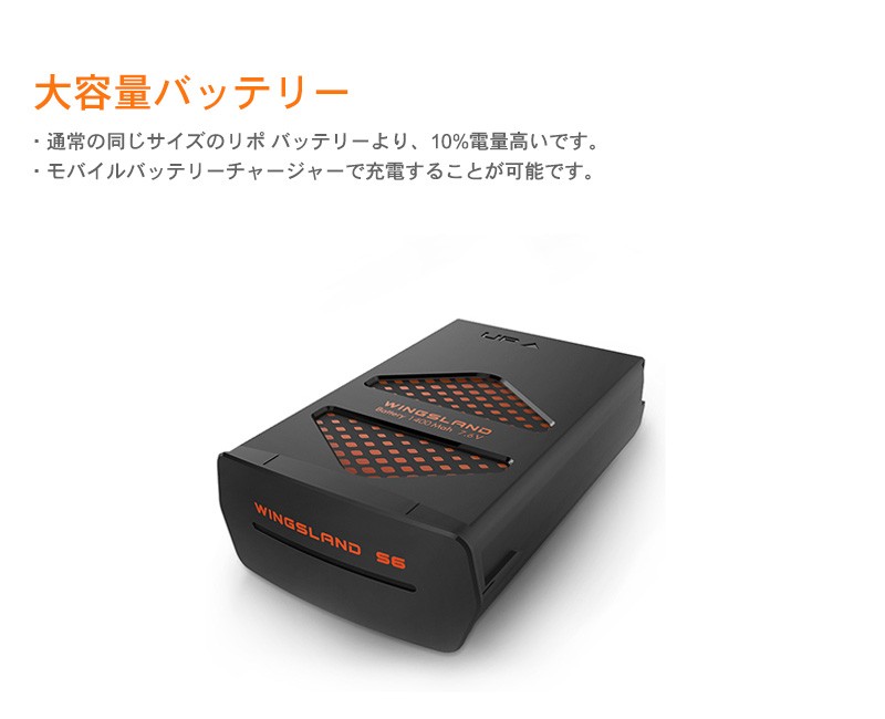特長Wingsland S6専用バッテリー!予備に持っていれば長時間楽しめます。