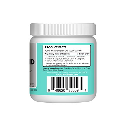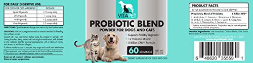 Vitapet probiotic has the highest CFU per serving and the most bacteria strains of any product on the market Our Probiotic strengthens and support digestion and immunity by coating the intestinal tract with friendly bacteria crowding out pathogens bad bacteria, and reduces risk of infection and inflammation.