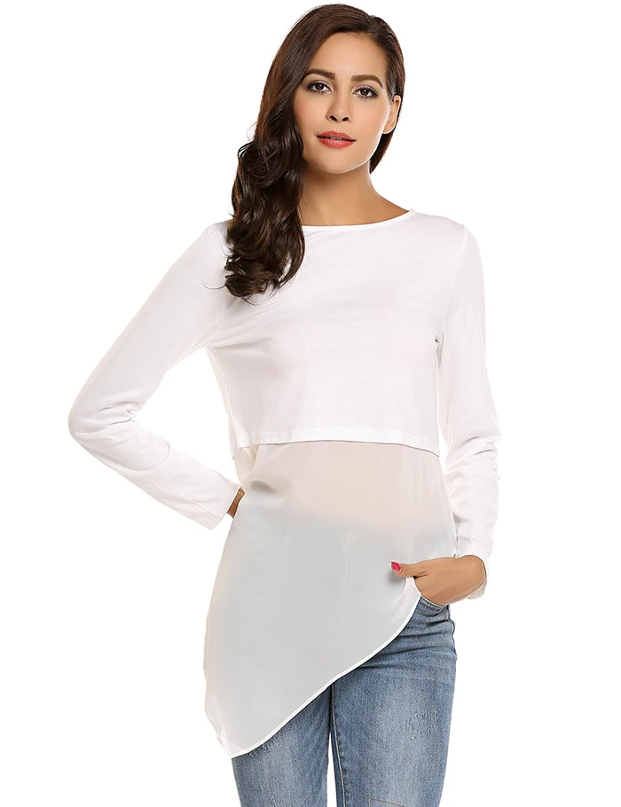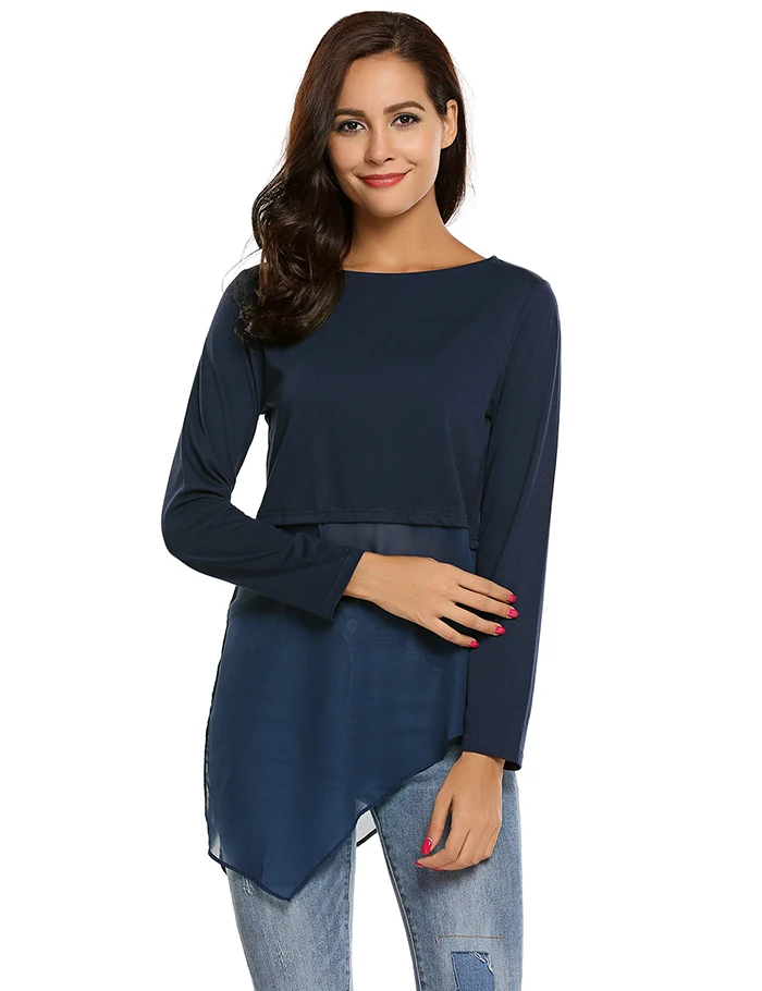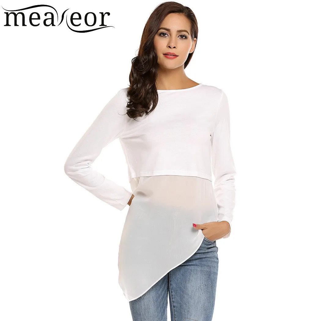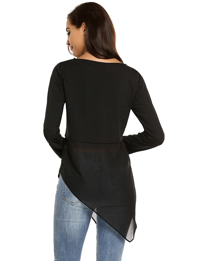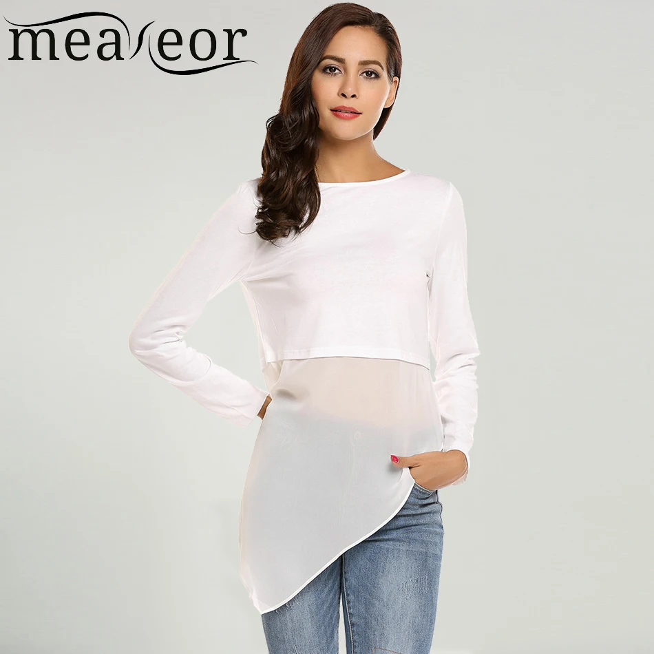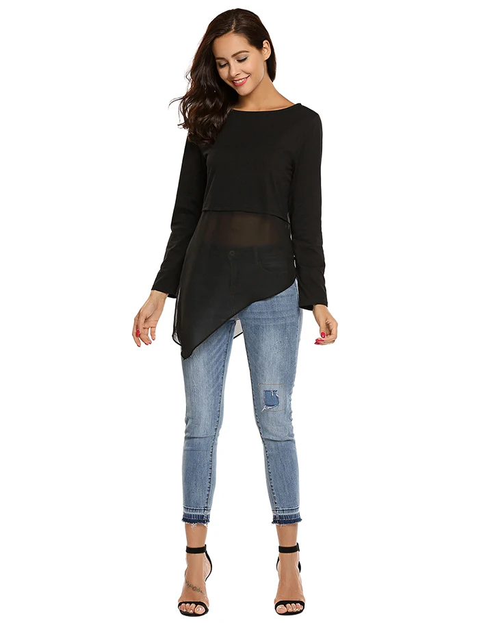 Item Style:Meaneor Mesh Patchwork O-Neck Long Sleeve T-Shirt