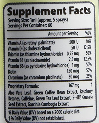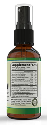 -. Feature : Natural Appetite Suppression -Controls Sugar Cravings Converts Stored Fat to Burn as Fuel / LOSE BELLY FAT! Green Tea and other scientifically backed ingredients work in perfect harmony to support losing belly fat, promote weight loss, lower body fat and increase your energy level during diets / FAST WEIGHT LOSS! RASPBERRY KETONES are well known for their strong slimming effects. With a few Sprays a day you will see those pounds vanishing one after another. Get your dream body in no time without any effort! HIGHER ENERGY LEVELS! Feeling tired all the time? This Spray Will give you plenty of power and strength to go through the day. Become better at work, chores and daily tasks, while also feeling vigorous and energetic! / INCREASE ENERGY! Need to lose annoying excess FAT? Look no further! You have found the ideal weight loss solution! Try our Garcinia Cambogia RASPBERRY KETONE, Green Tea PLUS LOSE WEIGHT FAST: Increased FAT BURNING. Higher METABOLISM. Mood Lifting Effect. Energy Booster. / Manufactured in the United States at a FDA GMP certified facility- Our facility follows a rigorous multiple step process to ensure the safety and reliability of every Formula produced. I