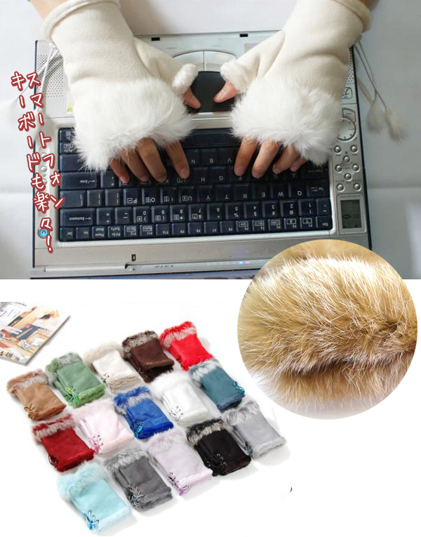 ※サイズはレディース専用フリーサイズです。(男性、もしくは手が大きめの方は入らない場合がございます。)※指先ラビットファーは折り返しタイプですので縫いつけはされていません。 ※スタッフによる実寸のため多少の誤差はございます。