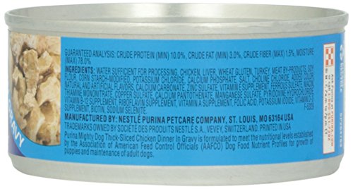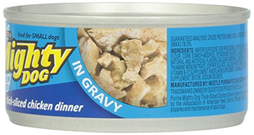-. Binding : Grocery -. Brand : Nestle Petcare -. EAN : 0050000352449 -. Feature : Food for small dogs / P.R.Ime Cuts bite-sized dinners are sure to be a favorite of your Mighty Dog / 100% Complete Nutrition for adult dogs and puppies with no added artificial preservatives / Country of origin: United States -. Label : Nestle Purina -. Manufacturer : Nestle Purina -. Model : 50011 -. PackageQuantity : 1 -. ProductGroup : Grocery -. ProductTypeName : GROCERY -. Publisher : Nestle Purina -. Size : One Size -. Studio : Nestle Purina -. Title : Nestle Petcare Mighty Dog Thick-Sliced Chicken Dinner in Gravy, 1 Count, One Size -. UPC : 050000352449