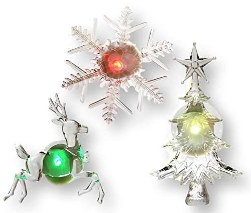 Set of 3 Assorted LED Color Changing Snowflake Christmas Tree and Reindeer with suction cups