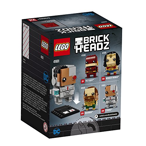 -. Feature : Buildable Cyborg LEGO BrickHeadz construction character features details from the blockbuster Justice League movie, including infrared eye, cybernetic face mask, silver body armor and cannon arm / Each LEGO BrickHeadz construction character comes with its own buildable collector's baseplate featuring the BrickHeadz icon / Have fun growing your LEGO BrickHeadz collection with other Super heroes from the blockbuster Justice League movie, and many more from your favorite films, TV series, games and / Mash up your LEGO BrickHeadz construction characters to create supercool hybrids or your own amazing characters / Stands over 2" (7cm) tall without baseplate, baseplate measures over 1" (4cm) square and under 1" (1cm) high