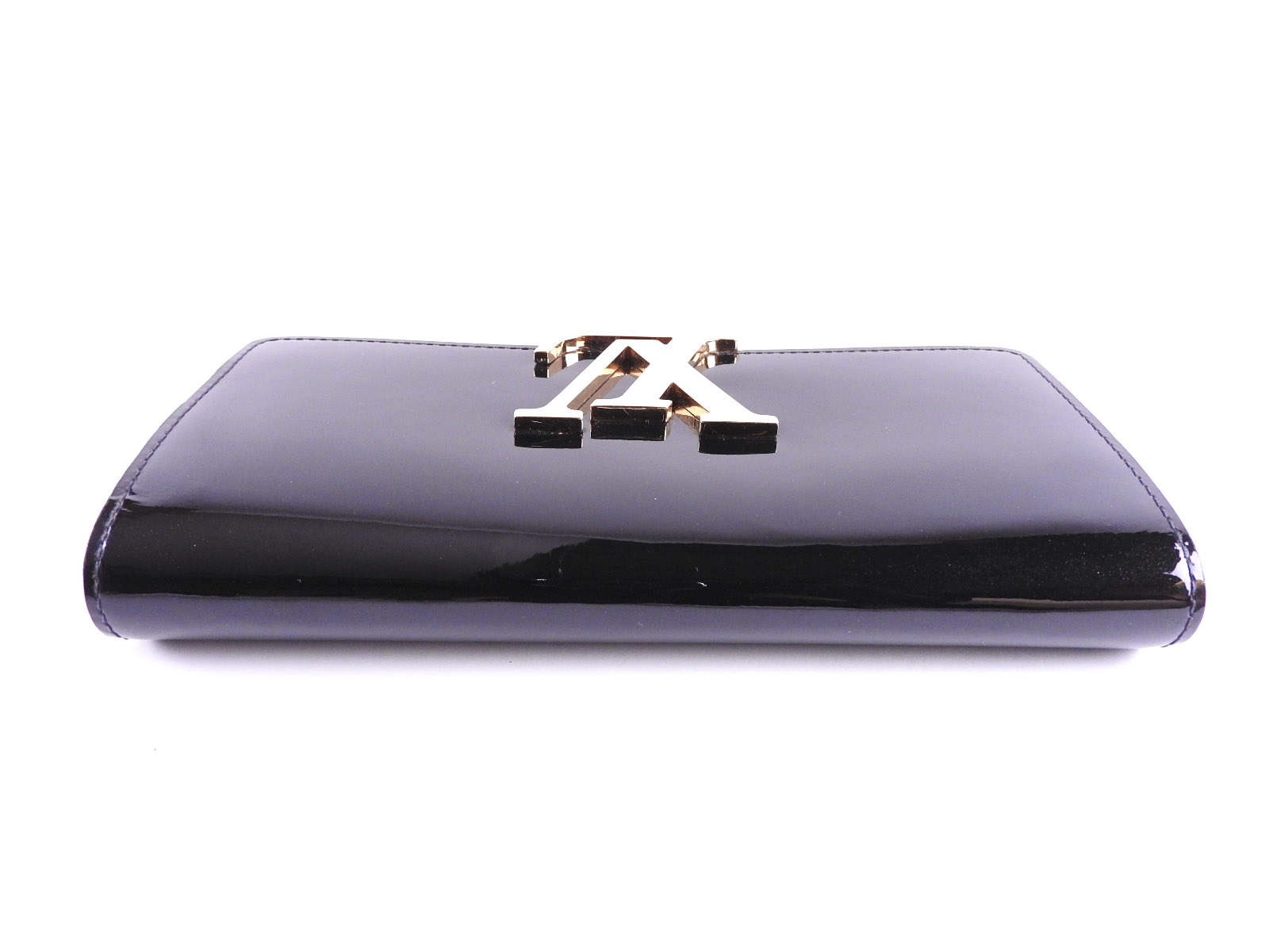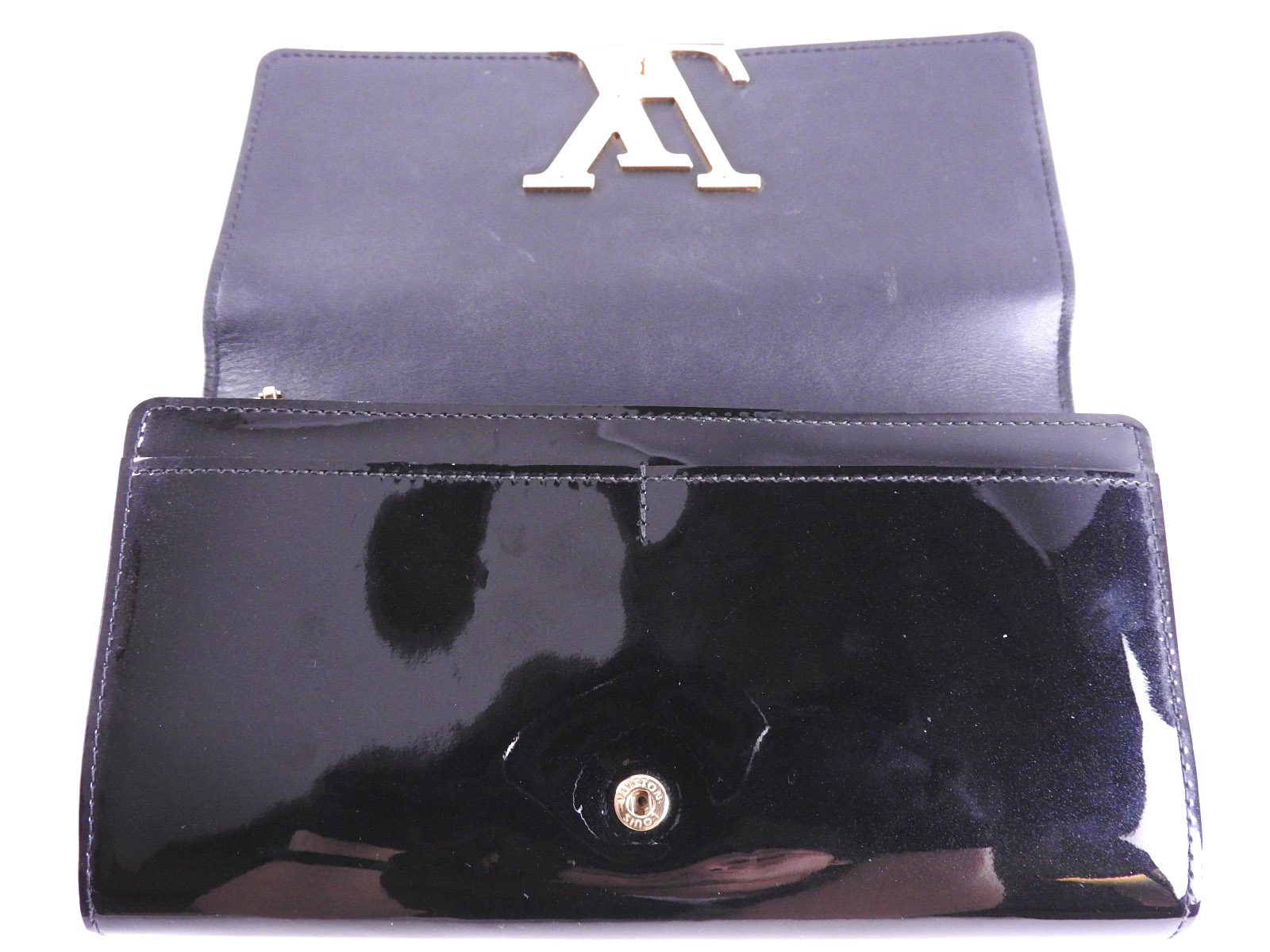 Auth LOUIS VUITTON Portefeuille Louise Bifold Long Wallet Vernis Noir Black LV Logo Gold M61316 A-7445