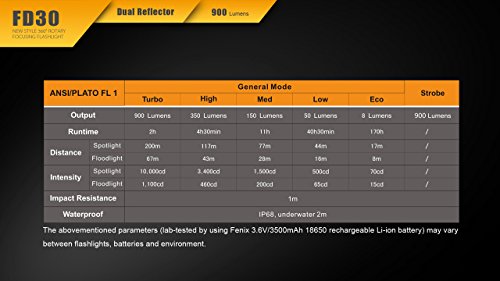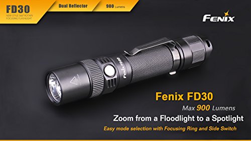 POWERFULLY BRIGHT - Similar to the Fenix PD35 and more compact than the FD40 and FD41, the Fenix FD30 offers a maximum 900 lumen beam from a Cree XP-L HI LED. Great for everything from professional use such a security and inspection to outdoor recreation such as camping, hiking or backpacking.