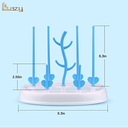 -. Feature : 【sky blue match 】: the bottle drying rack has a cozy sky blue color matched with any color of cups,representing visual attraction. / 【easy to clean】: the bottle drying rack is easy to be detached and clean, you can also use hot water to clean the bottle rack, it will dry soon / 【healthy materials】: the bottle drying rack is made from ABS and PP materials, can be washed using hot water / 【protecting the inside of cups】: the bottle drying rack is designed as dome with round top which won't scratch cups / 【heavy cups test】: the baby bottle stand has gone through test, the heavy cups will not lean even if they are hung on the side of the bottle drying rack