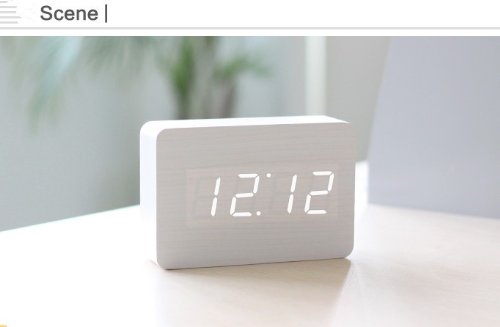 - Title : GREENWON Pure White Mini Fashion White LED Wooden Clock Digital Imitation Wood Alarm Desktop Office Home Furniture with Time Date Temperature Display Voice and Touch Activated