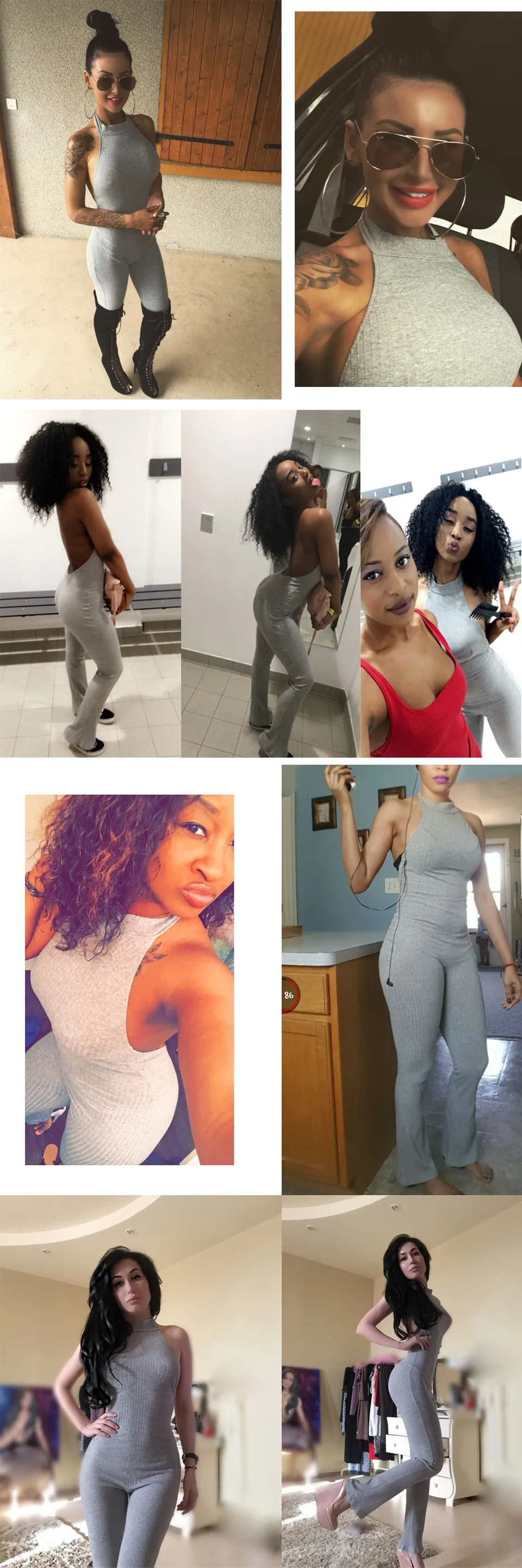 Color Style:Natural Color bodycon jumpsuit