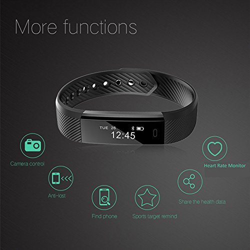 Find Phone and Anti-lost:The Phone will vibrate to remind you after starting the find phone function on the bracelet. While the bracelet be far away from the phone, the bracelet will vibrate; Alarm Clock:Don't be afraid that your alarm would wake up others because this silent vibration function just wake you up! (Alarm icon will be displayed on the bracelet after switch it ON in the APP.)