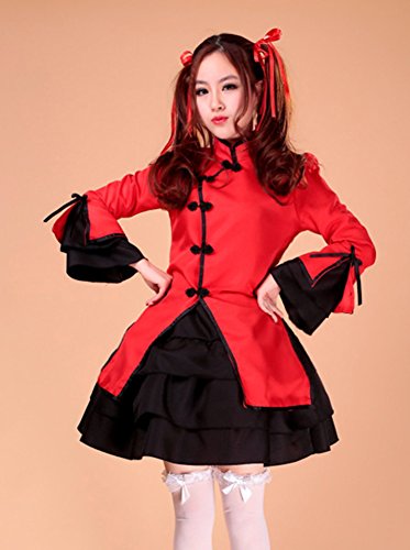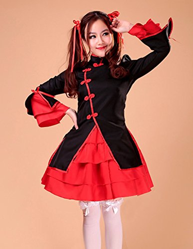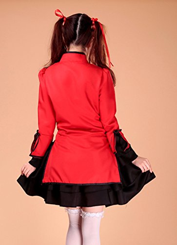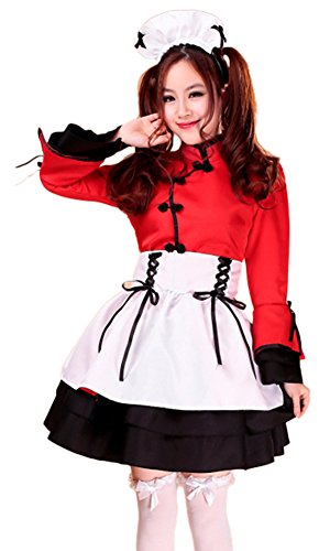 -. Brand : AvaCostume -. Department : womens -. Feature : Made of cotton blend, polyester / Including: top, dress, apron, headpiece, red ribbon / Great for Halloween, party, cosplay or stage performance / Special design to show your sweet and lovely amorous feelings / We also sold the stockings (ASIN: B00YP5PNBW) and petticoat (ASIN: B00XI0KWYI) -. ProductGroup : Apparel -. ProductTypeName : ADULT_COSTUME -. Title : AvaCostume French Maid Costume Cosplay Lolita Fancy Dress 5 Pieces