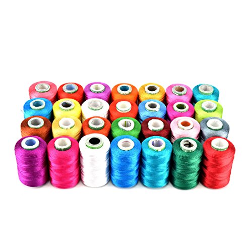 -. Feature : Length: 550 Yard Per Spoo / Package Include: 28 Piece Thead(28 Different Colors) / Use: Embroidery, Sewing, Crochet, Knitting, Silk Thead Jewelry. / Silk Shiny Thread / Assorted Colors
