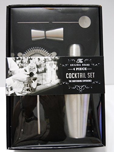-. Title : 4 Piece Cocktail Accessory Set - Cocktail Shaker, Double Jigger, Hawthorn Strainer & Bar Spoon