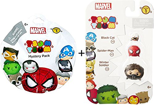 -. Feature : Disney Tsum Tsum Marvel Set with Mystery Pack / Marvel Tsum Tsum Series 1 Blind Bag Figure / Mystery Marvel Mystery Pack 1 Super Hero Character & Accessory / Wave 1 Marvel 3-Pack Stackable Figures / Black Cat 149/ Spider-Man 147 / Winter Soldier 109 / Marvel Collection Stackable Mini Figures "Collect 'em! Stack 'em!" Collectors