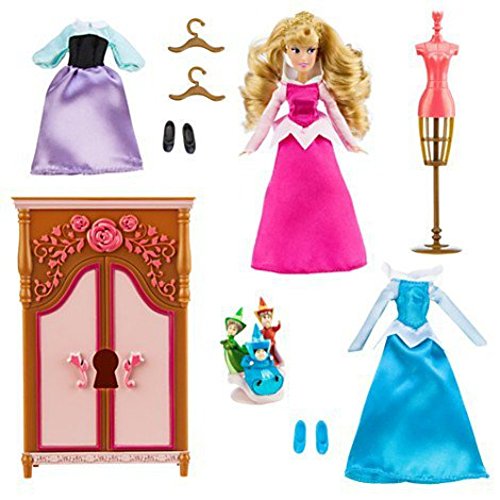 -. Feature : Officially licensed Disney merchandise / Aurora doll 5'' - Blue gown - Pink gown - Briar Rose peasant outfit - Wardrobe Dress form / Flora, Fauna, Merryweather figurine / Two pairs of shoes - Two hangers / Super cute