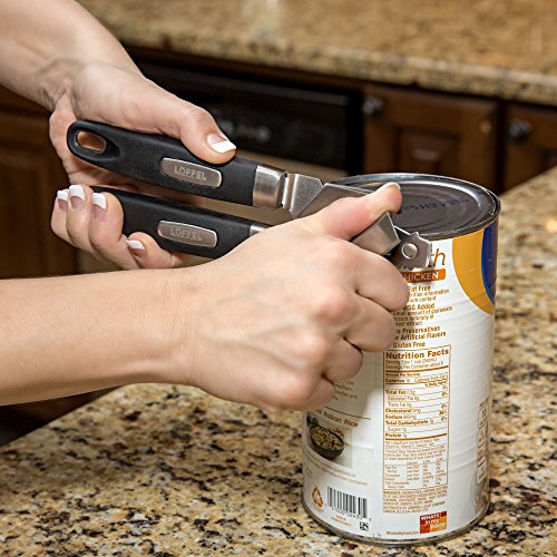 LÖFFEL Best Durable Portable Tin Can Openers - Manual Soft Grip Non-Slip Can Opener - Made of Heavy Duty Stainless Steel Ultra Sharp Blade - For Cooks in the Kitchen and Chefs in a Restaurant
