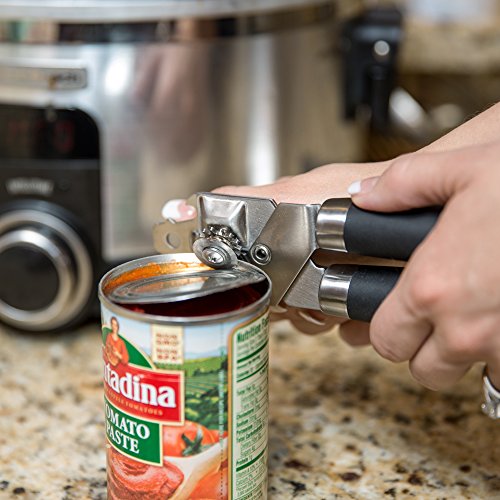 HEAVY DUTY STAINLESS STEEL WHEEL BLADE that can stay ultra-sharp. Safely and easily opens big and small cans in all shapes and sizes in seconds with a smooth movement without leaving behind any sharp edge on the can. Durable and strong, this can opener is built with a Lifetime Satisfaction Guarantee!