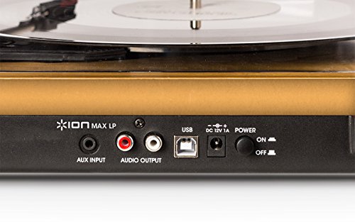 ION Audio Max LP | 3-Speed Belt Drive Turntable with Built-In Speakers & 1/8" Aux Input (Natural Wood)