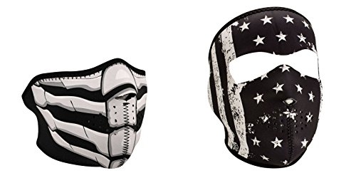 -. Title : Bundle (2 Items): 1 ZanHeadgear 'Bones Breath', Glow in the Dark, Half Face Neoprene Face Mask -AND- 1 Zan 'Black & White Vintage American Flag' Full Face Neoprene Face Masks, Ski Mask