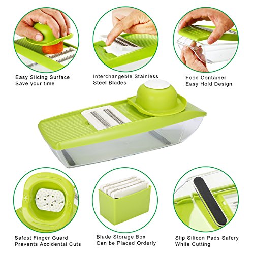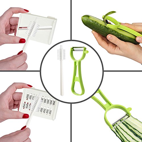 TAPCET Mandoline Slicer - 5 Interchangeable Blades Include Vegetable Grater, Julienne Slicer Cutter and Peeler,Brush,Hand Protector and Storage Container - Veggie Slicer and Vegetable Cutter