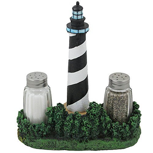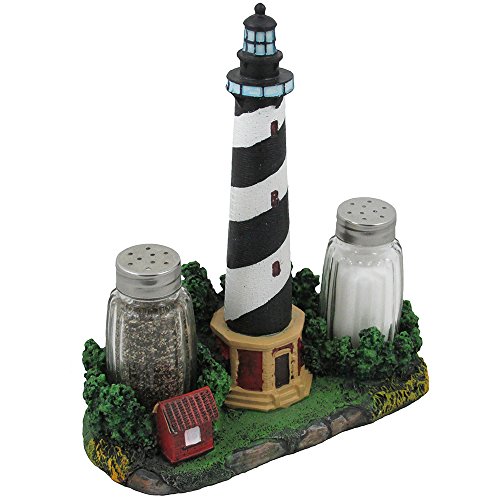 Nautical Cape Hatteras Lighthouse Glass Salt and Pepper Shaker Set Figurine with Holder in Decorative Kitchen Decor Sculptures and Collectible Coastal Gifts