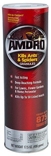 Quickly eliminate the threat of lawn and garden pests with Amdro Kills Ants & Spiders Granules. Our deep reaching formula kills on contact and keeps listed insects away for up to two months. Kills ants, spiders, grubs, chinch bugs, mole crickets, fleas, ticks and more. Made in the USA.Feature