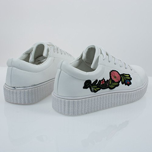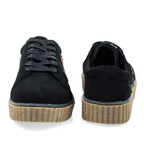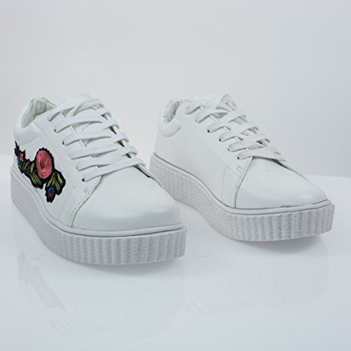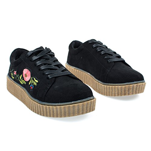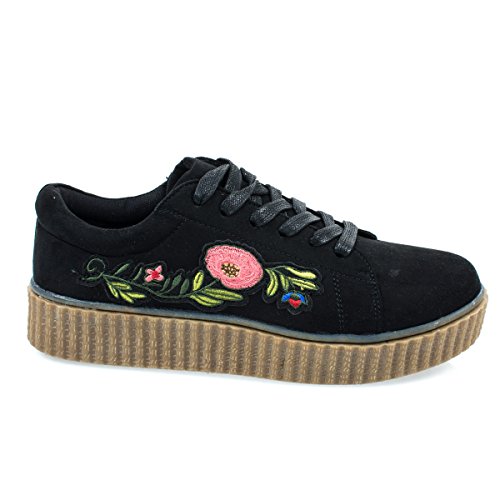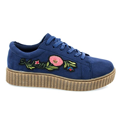 Binding : Apparel Product Description About This Shoes :Walk all day with these super comfortable platform sneakers featuring rubber ribbed platform, lace up closure, heat pressed embroidered floral patches and round toe silhouette. Brand - Bamboo Colors Available: Occasion: Casual Shoe Type: Flats - Athletic Shoe Style: Oxford Inner Lining: synthetic Heel Height In Inches - 0.25 Heel Style - Wedge Toe Style - round-toe Platform Height In Inches - 0.25 Shaft Height In Inches - n/a Circumference Opening - n/a Strap Type - Sole - rubber All Man Made Material unless otherwise stated. Computer/Phone/Table monitors might show color differently because of its quality or calibration, we suggest you look at the photo in at least 3 monitors if you need exact color match of your shoes. 0