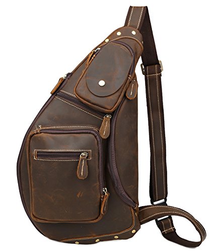 -. Title : Everdoss Herren echt Leder Bauchtasche Chest Pack fashion Gürteltasche casual Schultertasche klein Crossbody Ledertasche