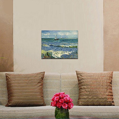 Wieco Art - Seascape at Saintes Maries by Vincent Van Gogh Oil Paintings Reproduction Classical Giclee Canvas Prints Artwork Ocean Pictures Paintings on Canvas Wall Art for Bedroom Home Decorations