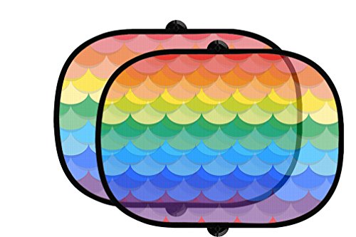-. Title : Rainbow Pattern 2 Pcs Auto Foldable Front Rear Side Window Sunshade Mesh