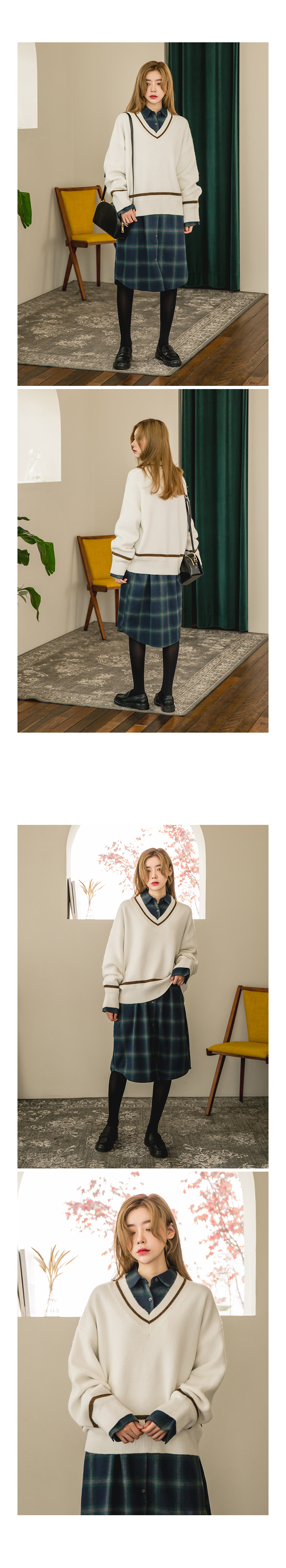 v네크라인은 목이 더욱 길어보이게 연출해주는 동시 여성스러운