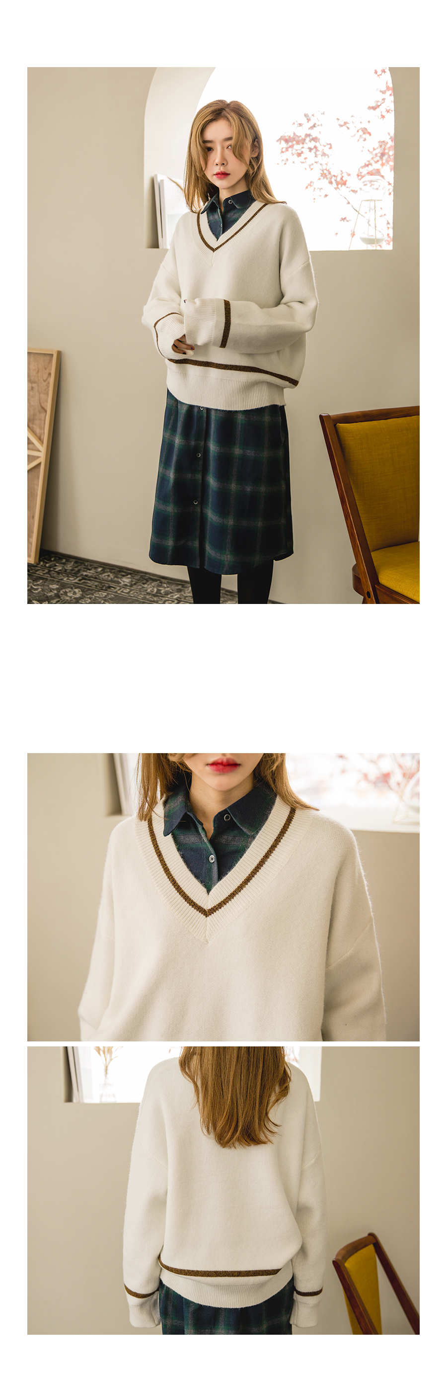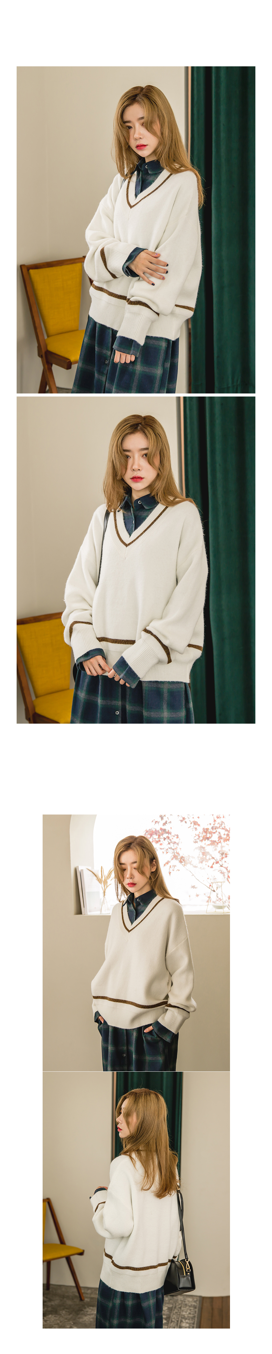 브이넥 카라와 배색이들어가있어 밋밋하지않고