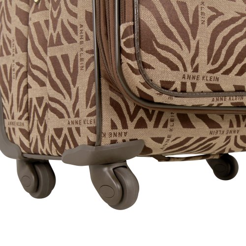 -. Binding : Apparel -. Brand : Anne Klein -. Department : lage -. Feature : Anne Klein signature jacquard body fabric / Telescoping trolley handles are recessed and feature a push-button locking mechanism / Fully lined interior that features organizational pockets, adjustable woven valet straps, and a removable toiletry pouch / Four wheel spinner system for easy rolling / Expandable for added packing capacity and feature top and side carry handles for convenience -. Label : Randa lage -. Manufacturer : Randa lage -. NumberOfItems : 1 -. PackageQuantity : 1 -. ProductGroup : Apparel -. ProductTypeName : LAGE -. Publisher : Randa lage -. Studio : Randa lage -. Title : Anne Klein Lage Mane Line 24 Inch Expandable Spinner