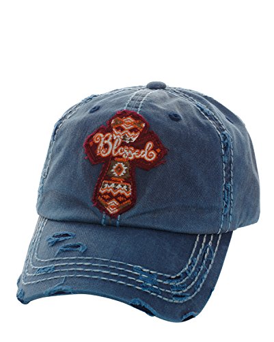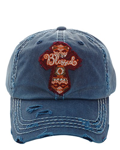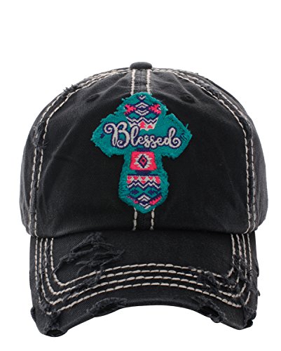 Distressed Embroidered Blessed Cross Patch Baseball Hat