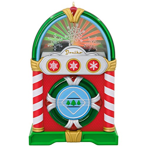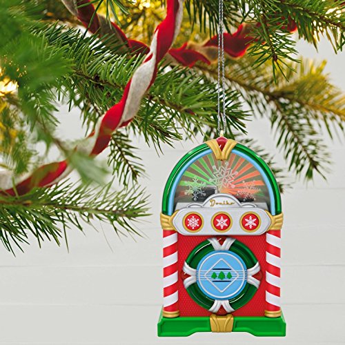 Rock all the way around the Christmas tree and back again with this fun jukebox ornament. Just push a button and watch it come alive with lights and music, playing three Christmas classics sure to be fan favorites. Requires three replaceable LR44 batteries (included). Learn more about Keepsake Ornaments.