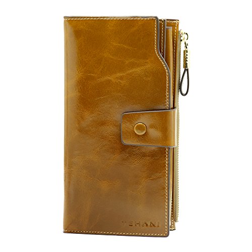 TEHANI Women's Genuine Leather Clutch Wallet With RFID Protection (BROWN RFID Wallet)