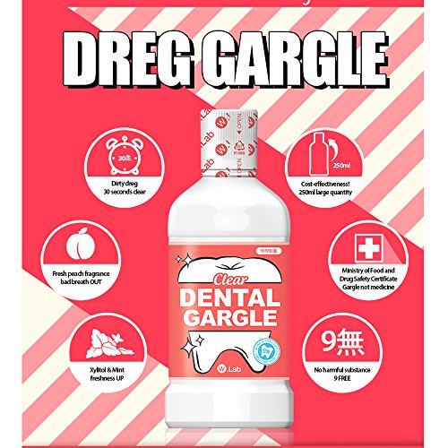 -. Feature : W.Lab Clear Dental Gargle 250ml/ea / Only need 30 seconds to clear dirty dreg / Fresh peach fragrance / Ministry of Food and Drug Safety KOREA certificate gargle / 9 Cut! No harmful substances included