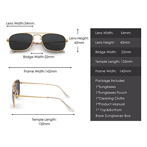 Fashion and stylish design - The square aviator sunglasses is suitable for any face. Alloy metal frames with acetate temple tips and glass lenses are impact, scratch resistant and durable that can show your taste, your choice, your personality.