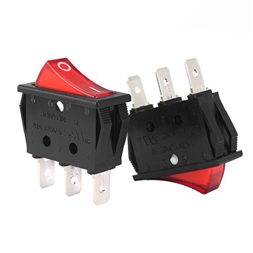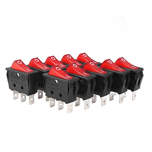 uxcell 10Pcs UL Listed AC 20A/125V 22A/250V SPST 3 Pin 2 Position Boat Rocker Switches On Off with Red Backlit LED Light