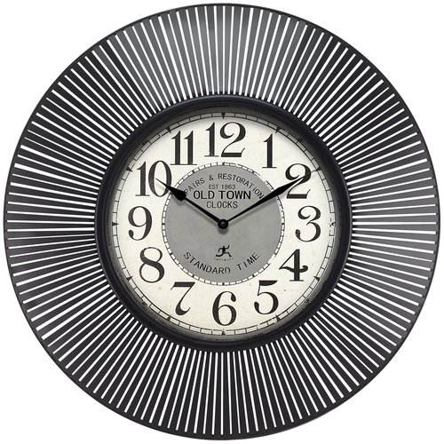 -. Binding : Kitchen -. Brand : Infinity -. Color : Black -. EAN : 0731742151568 -. Feature : Old Town Standard has black metal ribbing that gives this clock a unique look / It is sure to be a conversation piece in any room. / 31.5" Round Diameter -. IsAutographed : 0 -. Label : Infinity -. Manufacturer : Infinity -. Model : 15156BK-4107 -. MPN : 15156BK-4107 -. PackageQuantity : 1 -. PartNumber : 15156BK-4107 -. ProductGroup : Home -. ProductTypeName : HOME -. Publisher : Infinity -. Size : 31 inches round -. Studio : Infinity -. Title : Infinity Instruments 2016 New Item Old Town Standard 31 Inch Large, Oversized, Metal Wall Clock -. UPC : 731742151568 -. Warranty : Two Year Limited Warranty