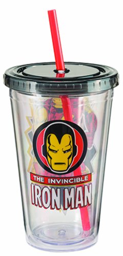Vandor 26414 Marvel Iron Man 18 oz Acrylic Travel Cup with Lid and Straw, Red, Back, and Yellow