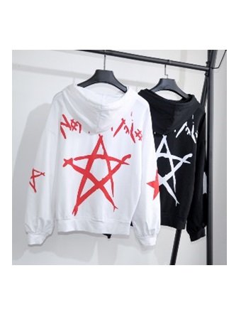 -. Title : Yuan Yuan(ユアン ユアン) 星柄パーカー レディース ブラック ホワイト Mサイズ Lサイズ