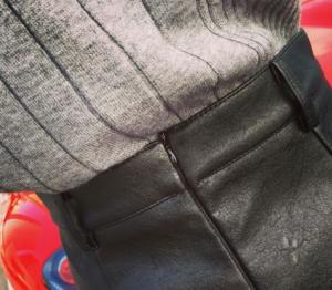 シャープなコーデにぴったりのレザースカートは持っておくと便利アイテムになりますよ!
