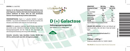-. Binding : Badartikel -. Brand : Vita World -. EAN : 4260252420636 -. Feature : Inhalt: 750g Pulver / Zutaten: D (+) GALACTOSE PUR Galactose ist ein Monosaccharid (Einfachzucker) und Baustein eines jeden Organismus. Galaktose dient neben der Energiegewinnung auch anderen Funktionen im Körper. Nicht bei einer bestehenden Galactose-Verwertungsstörung verzehren (Galactosämie). / Verzehrempfehlung: Täglich 2 x 6 Gramm zwischen den Mahlzeiten mit Tee oder Wasser verzehren. Der Abstand zu einer Mahlzeit sollte mindestens eine Stunde betragen. / Mindesthaltbarkeit: 10/2018 / Als 2.Produktbild haben wir das Produktetikett hinterlegt, darauf finden Sie alle wichtigen Informationen zum Produkt. Um das Bild aufzurufen, nutzen Sie bitte die 2 Schaltflächen links oben, neben dem Produktfoto. -. Label : Vita World -. LegalDisclaimer : Die angegebene, empfohlene tägliche Verzehrmenge darf nicht überschritten werden. Nahrungsergänzungsmittel sind kein Ersatz für eine abwechslungsreiche und ausgewogene Ernährung sowie eine gesunde Lebensweise. Außerhalb der Reichweite von Kindern aufbewahren. -. Manufacturer : Vita World -. PackageQuantity : 1 -. ProductGroup : Drogerie & Körperpflege -. ProductTypeName : HEALTH_PERSONAL_CARE -. Publisher : Vita World -. Studio : Vita World -. Title : 3er Pack Vita World D(+) Galactose 750g Apotheken Herstellung Pulver