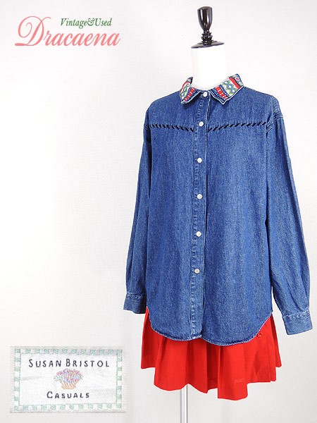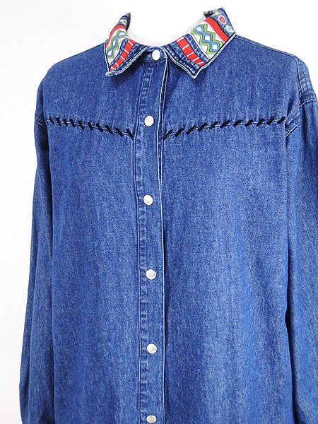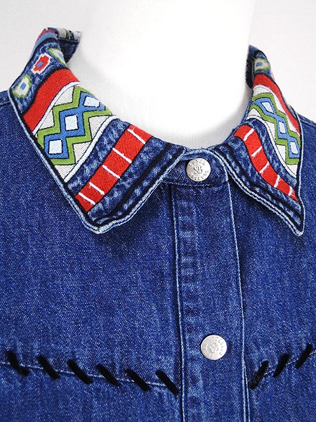 ネイティブ柄の刺繍襟や胸レザー装飾が