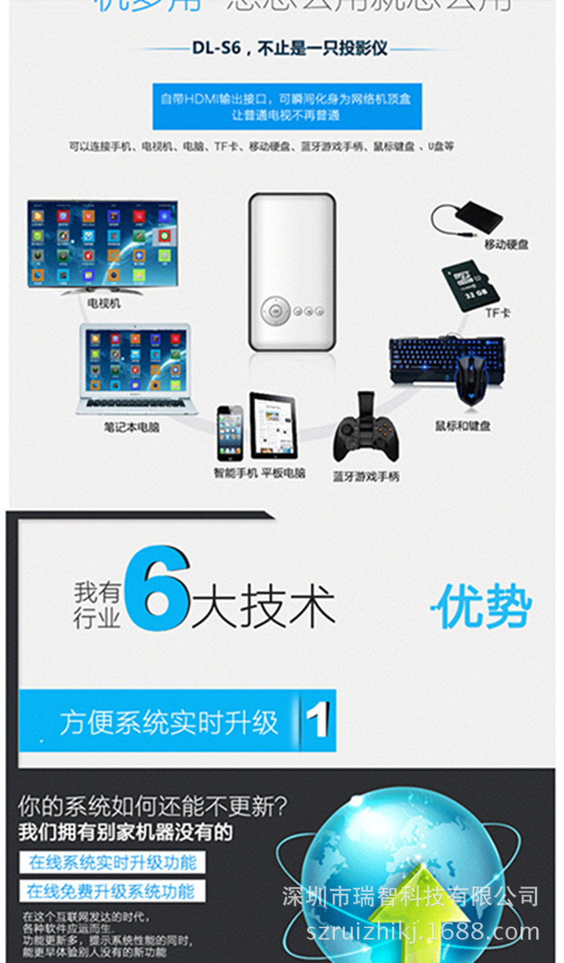 S6新款智能投影仪 DLP无线安卓wifi手机同屏微型便携商用投影机