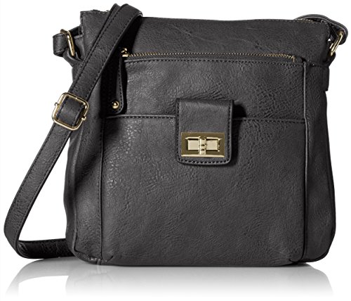 -. Feature : Mid-size cross-body bag featuring wide zippers and tab with turn-lock hardware at front pocket