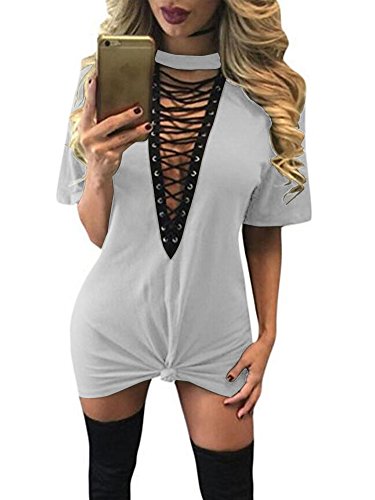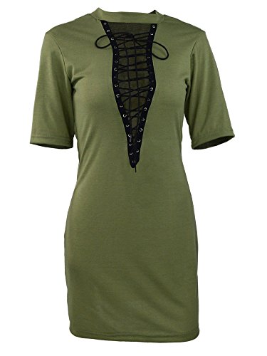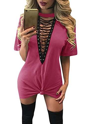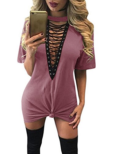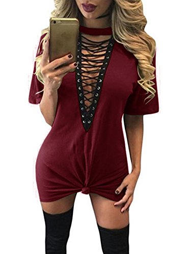 Features: slim fit, cross lace up, halter neck, short sleeves, above knee length.