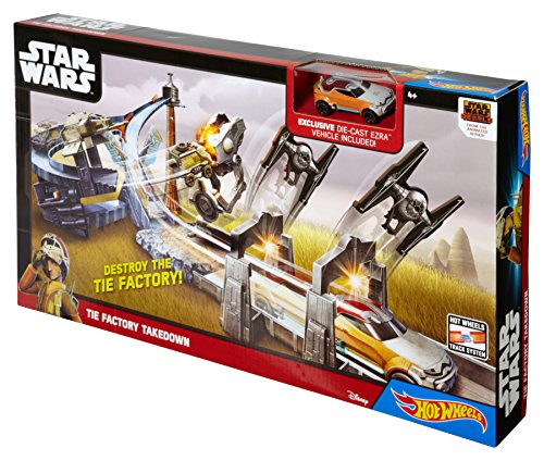 -. Binding : Toy -. Brand : Hot Wheels -. EAN : 0887961140729 -. Feature : Two of kids' favorite brands - Hot Wheels and Star Wars - have joined forces! / This play set allows kids to play out the starship action of the upcoming film Star Wars: The Force Awakens! / Works with Star Wars starships made with Hot Wheels die-cast / Recreate your favorite scenes from the movie / Makes a great gift for kids, collectors and Star Wars fans of all ages -. Label : Mattel -. Manufacturer : Mattel -. Model : CLM24 -. MPN : CLM24 -. PackageQuantity : 1 -. PartNumber : CLM24 -. ProductGroup : Toy -. ProductTypeName : TOYS_AND_GAMES -. Publisher : Mattel -. Studio : Mattel -. Title : Hot Wheels Star Wars TIE Factory Takedown Track Set -. UPC : 887961140729 -. Warranty : 1 year warranty against manufacturer defects