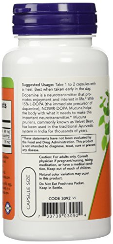 -. Binding : Health and Beauty -. Brand : Now Foods -. EAN : 0641361586422 -. Feature : promotes enjoyment and interest in life -. Label : NOW -. Manufacturer : NOW -. MPN : 3092 -. PackageQuantity : 2 -. PartNumber : 3092 -. ProductGroup : Health and Beauty -. ProductTypeName : HEALTH_PERSONAL_CARE -. Publisher : NOW -. Studio : NOW -. Title : DOPA Mucuna 90 Vcaps by NOW (Pack of 2) -. UPC : 733739030924